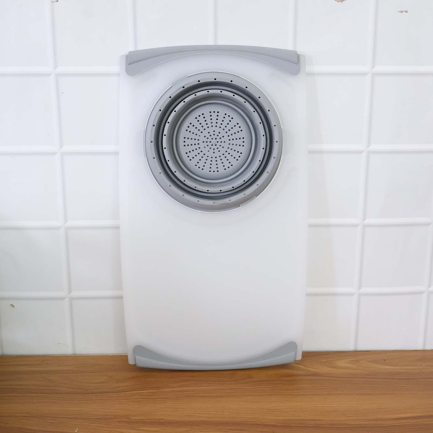 Material: PP cutting surface with TPR anti-slip grips; TPR/PP collapsible basket