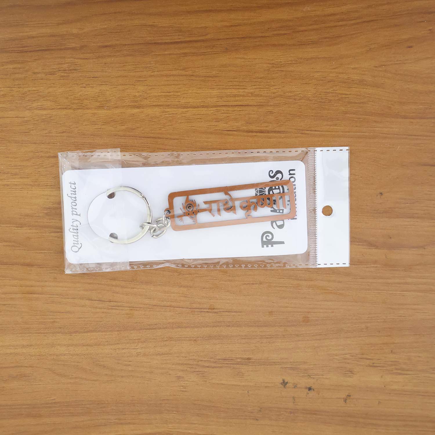 Bring divine blessings and elegance wherever you go with this beautifully designed Radha Krishna Metal Keychain. Featuring a laser-cut “राधे कृष्णा” design in Hindi with an intricate peacock feather motif, this keychain reflects devotion, culture, and artistry in every detail.